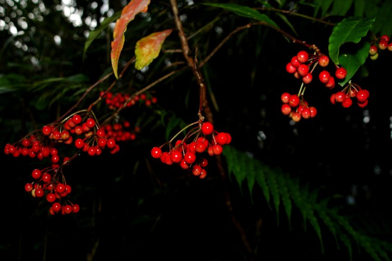 | 植物写真家の方を案内して、ヘツカリンドウの撮影に行って来ました。ヘツカリンドウは例年より開花が遅れていて、開花株は例年より少なかったものの、なんとかその様子を撮影することが出来ました。ルリシャクジョウは、いつもの場所でかろうじて2〜3株残っていました。林道沿いでは、アリモリソウとマルバハグマが真っ白で清楚な花をあちらこちらで咲かせ、黄色いツワブキの花が満開でした。そして、年末年始に欠かせない、センリョウ、マンリョウやハクサンボク、アオノクマタケランの真っ赤な実、ルリミノキの瑠璃色が鮮やかに森を彩っていました。 また、森の中では、シキミ、サザンカ、ヒメサザンカ、トクサランの花が、人知れずひっそりと咲き、辺りにさわやかな香りを漂わせていました。 |