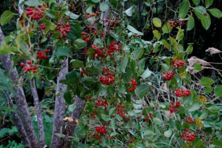 | 2006年の山歩き納めに行って来ました。森の中では、オキナワスズムシソウの清楚な花が咲き乱れ、センリョウ、マンリョウ、アリドウシの赤い実が新しい年を祝うかのように赤く色づいていました。また、ヒメサザンカやサクラツツジが咲き出し、また、絶滅危惧種のオキナワセッコクの花が咲き出し、サツマイナモリやトクサラン、カシノキラン、ヒメトケンラン、オナガエビネ、ツルラン、チケイラン、リュウキュウアイ等の貴重な植物に幾つも出会いました。特に、危急種のレンギョウエビネの大株が何株も着生しているのがあり、開花時期に皆で再挑戦する事にしました。林道沿いには、オキナワサルトリイバラが真っ赤な実をどっさり付けていました。また、帰り際に寄った海岸の岩場では、アキノキリンソウ、オキナワギク、ホソバワダン、シキミの可憐な花が咲いていて、疲れを癒してくれました。斑入りシラタマカズラもありました。 |