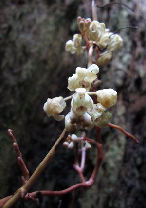 | 26日、雨の中で撮影したタカツルラン(絶滅危惧IA類)のことが気になって気になって仕方がないので、雨の上がった5月29日、やんばるの森へ行って来ました。これまで見つけたタカツルランの中では、花茎の上がり方も、花付きの良さも、最も素晴らしいので、天気の良い条件で撮影したかったのです。今年は当たり年のようで、花茎が5本、花が合計百数十個も付いています。連日の雨で、ちょっと心配でした。ドキドキしながら目的のポイントへ着くと、意外と雨に強く、花は全然落ちていませんでした。しかも、9割方の花が既に開花しており、最盛期のようでした。また、前回、真上にあるため撮影の出来なかったボウラン(準絶滅危惧)の大株は開花が進んでいて、数十輪にもなっていました。通常の色とは違い、黄緑色の珍しいものです。まだ蕾が数十個あり、1週間以上は観察できそうな感じがします。森の中では、初めて見る、白く透き通ったキノコが発生していました。 林道沿いでは、イジュやノボタンの花がきれいに咲いていました。また、前回に引き続いて同じ場所で、ヤンバルクイナに遭遇しました。 |