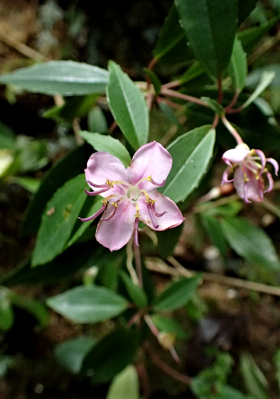 | 6月20日、久しぶりにやんばるの森へ行って来ました。まず最初に、なかなか開花に出会えないヤンバルマユミの開花状況を見に行きましたが、タイミングよく綺麗に開花していました。この時期、よく開花しているセンニンソウですが、なかなか気づきにくいオキナワセンニンソウの花が見つかりました。近くでは、サクララン、ギョクシンカが咲いていました。 場所を変えて、渓流へ降りてみましたが、コバノミヤマノボタンが早くも咲きだしていました。また、ヒナノシャクジョウに久しぶりに出会いました。そして、エダウチクジャクやオオギミシダも見つかりました。リュウキュウコンテリギ、コクラン、トクサラン、ヒメトケンラン等がありました。数日前の雨のせいか、リュウキュウヤマガメが3匹も出て来てくれました。 |