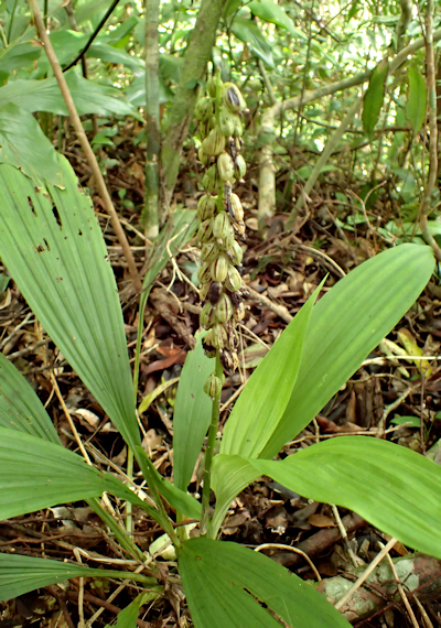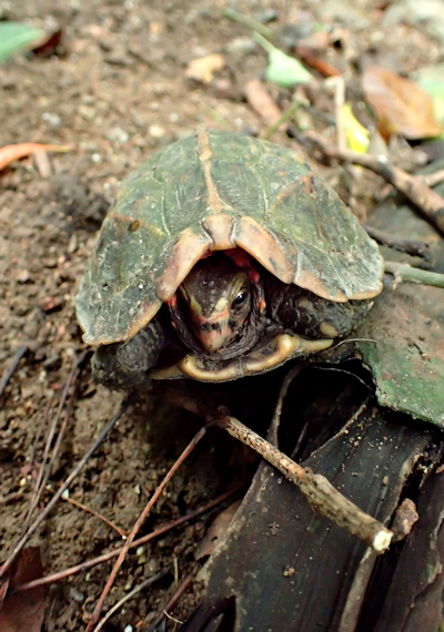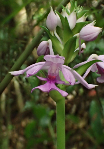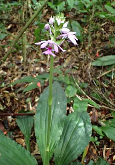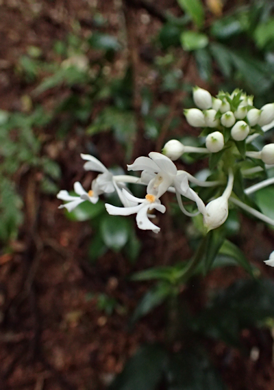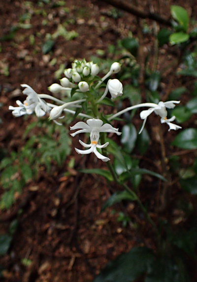 | 7月2日、やんばるの森へ行って来ました。大学の研究者からの依頼で、アオイボクロの発生状況の確認が目的でした。暫く入っていなかった森なので、倒木や雑木が生い茂り、何度も迂回を余儀なくされて目的の場所へたどり着くのに時間がかかりました。ようやくたどり着いたポイントでは、数株が咲き始めていました。これから次々と発生してくるものと思われます。前日に雨が降っていたせいか、3個体のリュウキュウヤマガメに出会いました。最近では珍しい数です。森から出る直前に、真っ白なツルランが綺麗に咲いているのに出会いました。 次に別の森へユウズルエビネ(リュウキュウ)を確認しに行きました。以前に何株も確認している森なので、ゆっくり丁寧に見て歩いていると、木々の合間から赤紫の綺麗な色の花が見え隠れしています。急いで近づいてみると、端正なユウズルエビネでした。久しぶりの出会いなので、皆興奮気味に時間をかけて撮影していました。近くには、レンギョウエビネの大株が幾つもありました。 林道沿いでは、ノボタン、アオノクマタケラン、ギョクシンカ、ナガミボチョウジ等が咲いていました。 |