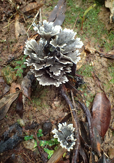 | 7月4日、やんばるの森へ行って来ました。別種ではないかとずっと思っているイナバランらしきもののその後の様子を観察すること、ルリシャクジョウのようで少し変わっているものの観察、ホンゴウソウのようで変わっているものの観察が目的でした。 森の中では、イナバランモドキ、ルリシャクジョウ、ホンゴウソウの3種類とも綺麗に開花していましたから、詳細な部分の撮影をすることが出来ました。近くでは、ツルランが純白の綺麗な花を咲かせていました。ベニナギナタタケ、カワラタケ?、巨大なヒダウロコタケ、ムヨウランの蕾、ツルホラゴケの群生等が見つかりました。また、何かにやられたのか、行き倒れか、リュウキュウイノシシの頭蓋骨がありました。 林道沿いでは、アカミズキ、ノボタン、アデク、ホルトノキ、キキョウラン等が咲いていました。また、サルトリイバラ、シシアクチが結実していました。ゴンズイの真っ赤な実は、特に目立っていました。 |